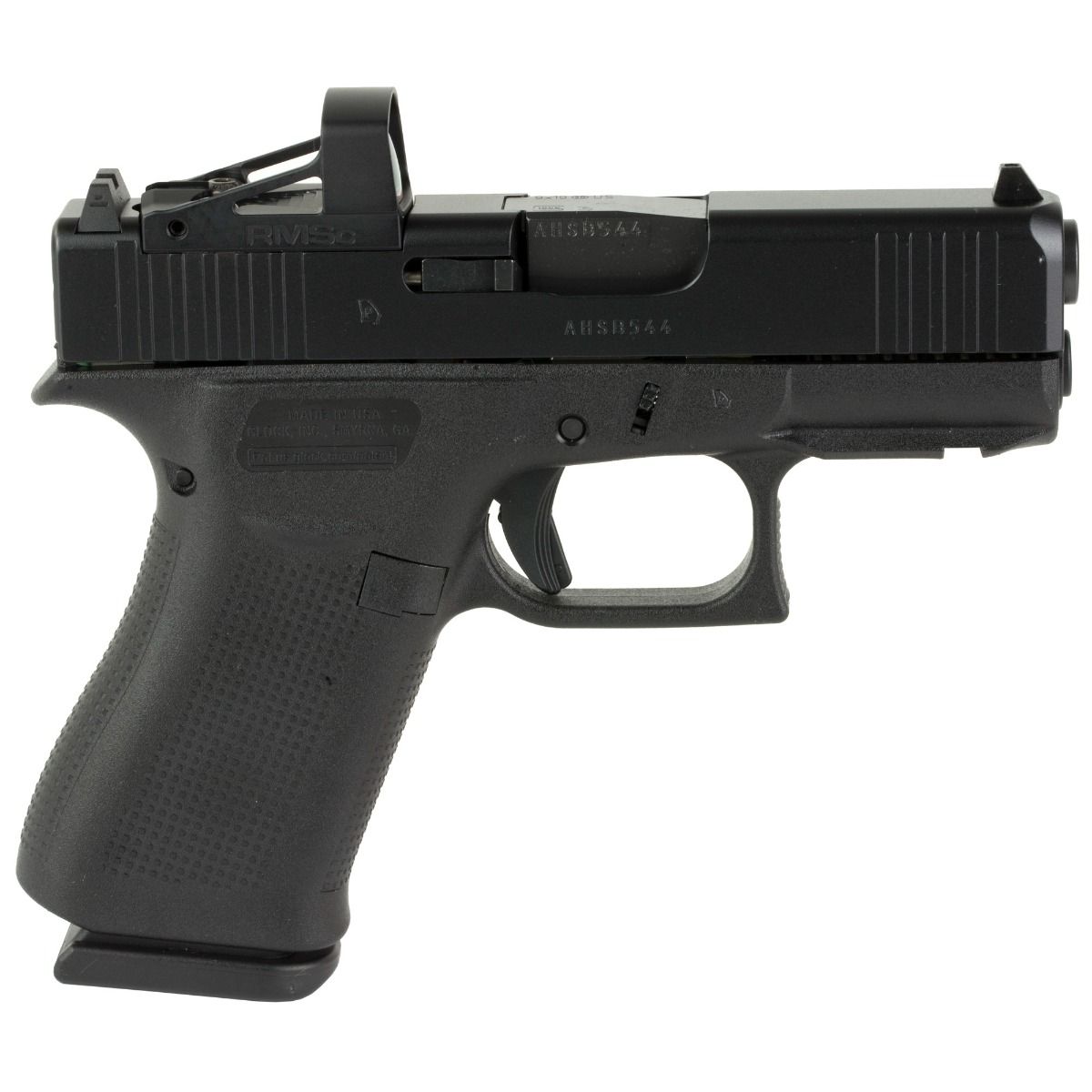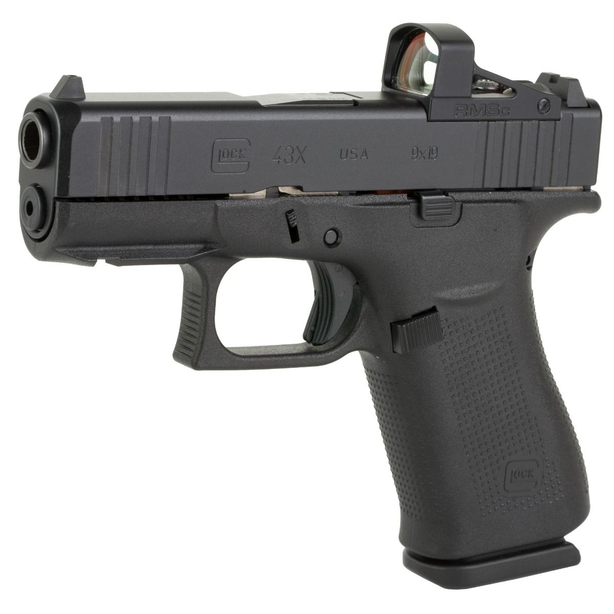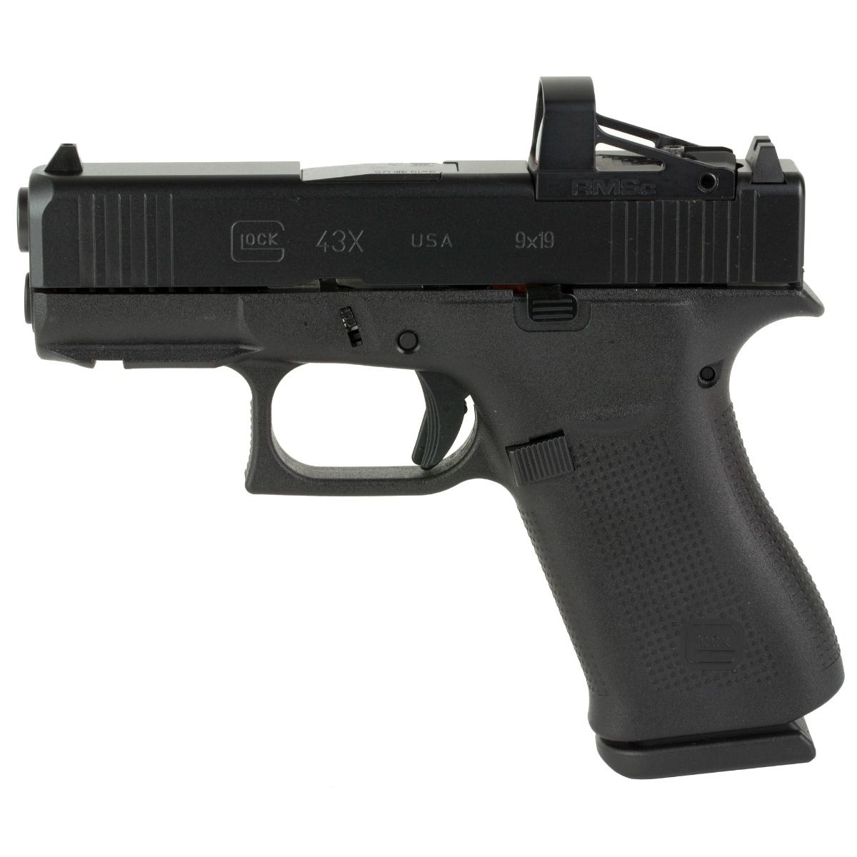 Glock, 43X MOS, TALO Exclusive, Striker Fired, Semi-automatic, Polymer Frame Pistol, Sub-Compact, 9MM, 3.41" Barrel, nPVD Finish, Black, Fixed Sights, Includes RMSc Glass Edition 4MOA Dot Shield Optic, 10 Rounds, 2 MagazinesChambered in 9mm Luger the G43X features a compact Slimline frame with a black slide with an nDLC finish. The 10-round magazine capacity makes it ideal for concealed carry. Designed for comfort, The G43X combines a compact-size grip length, a built-in beaver tail and a subcompact-slim slide for a comfortably balanced, versatile grip thats ideal for a variety of users. The frame incorporates elements of the Gen5 and Slimline series such as the short trigger distance, a frame with a built-in beavertail, a reversible magazine catch and the incredibly accurate, match-grade GLOCK Marksman Barrel (GMB) and precision-milled front serrations.