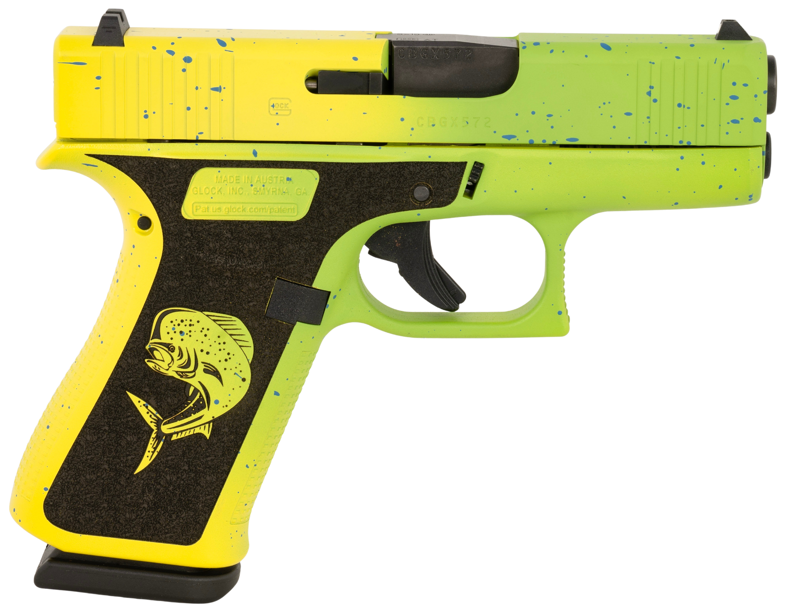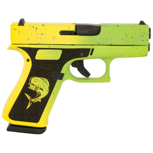 Glock G43X Slim Sub-Compact Frame 9mm Luger 10+1 3.41" Black GMB Barrel, Mahi Cerakote Serrated Steel Slide, Mahi Polymer Frame