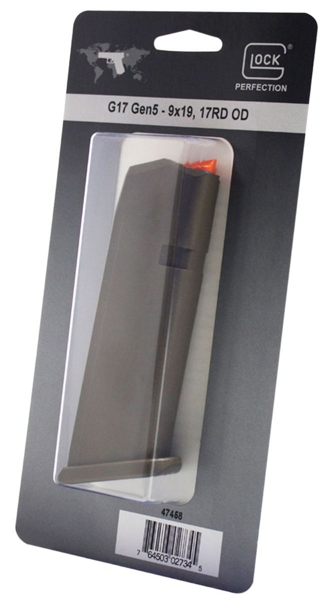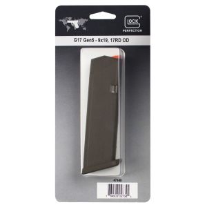 This replacement or spare magazine is compatible with your Glock 17. It features an OD green finish.
