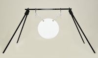 The gong frame w/10 is easily assembled by sliding the legs into the pockets on the end plates, then sliding the leg/plate assemblies onto the 1" diameter support shaft. No tools are required and the legs can be positioned to provide a stable unit on uneven ground. The frame can be easily disassembled for transport in your vehicle. The support shaft is 30" from the ground to provide clearance for larger targets, like the 18" diameter gong. The chains are bolted to the targets with 1/2" grade 8 hardened carriage bolts, hardened washers and locknuts and the height of the target is easily adjustable by sliding any link of the chain onto sturdy hooks which are welded on the support shaft. 10" Gong Target included. Overall size: 60 w x 28 dp x 30 h