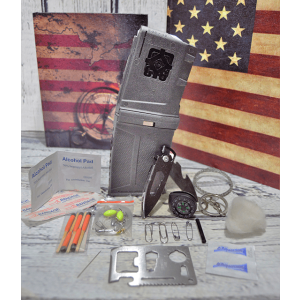 The Got Your Six Survival Mag has been designed from the ground up, and is proud to be the first and ONLY company to create and utilize a storage container within a functional and serviceable AR-15 magazine! Packed with a well equipped Survival Kit and designed it to work in conjunction with the magazine and it's special capabilities