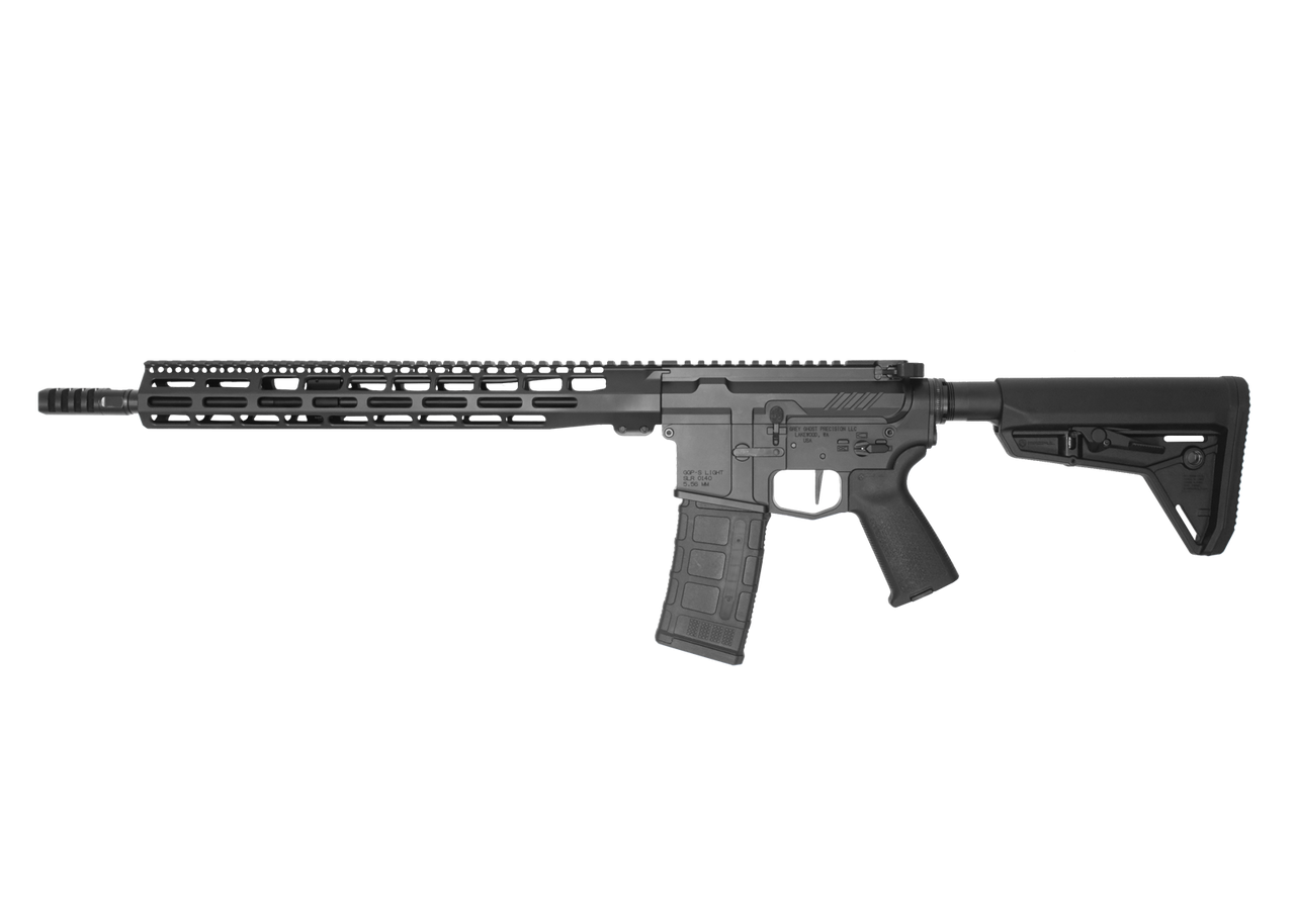 - 16" 5.56 BBL. 1x8 twist, 1/2-28 threaded muzzle with GGP muzzle brake, Black Nitride coating in and out, Mid Length gas.