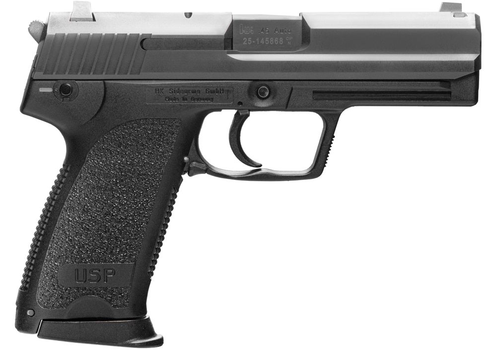 Originally designed for the American market, the USP (Universal Self-loading Pistol) has found international acceptance as an accurate and ultra-reliable handgun. Features favored by U.S. law enforcement and military users provided much of the design criteria for the USP. The controls are uniquely American, influenced by such famous designs as the Government Model 1911 pistol. All USPs use a fiber-reinforced polymer frame stiffened by stainless steel inserts at areas subject to stress and friction. HK pioneered this use of polymer materials in the production of handguns more than 30 years ago with the development of the VP70Z and P9S pistols. The USP control lever, a combination safety and decocking lever, is frame mounted and quickly accessible, unlike the slide-mounted safeties common on many semi-automatic pistols. Using a modified Browning-type action with a special patented recoil reduction system, the USP recoil reduction system reduces recoil effects on pistol components and also lowers the recoil forces felt by the shooter. This same recoil reduction system has been tested and proven in the HK Mark 23 pistol developed for the U.S. Special Operations Command. The USP recoil reduction system is insensitive to ammunition types and requires no special adjustment or maintenance. It functions effectively in all USP models. The modular design of the USP’s internal components allows the control lever function to be switched from the left to the right side of the pistol for left-handed shooters. The USP can also be converted from one type of trigger firing mode to another. This includes combination double-action and single-action (DA/SA) modes and double action only (DAO) modes. The USP is available in nine trigger/firing mode configurations and three calibers. 9mm, .40 S&W and .45 ACP.