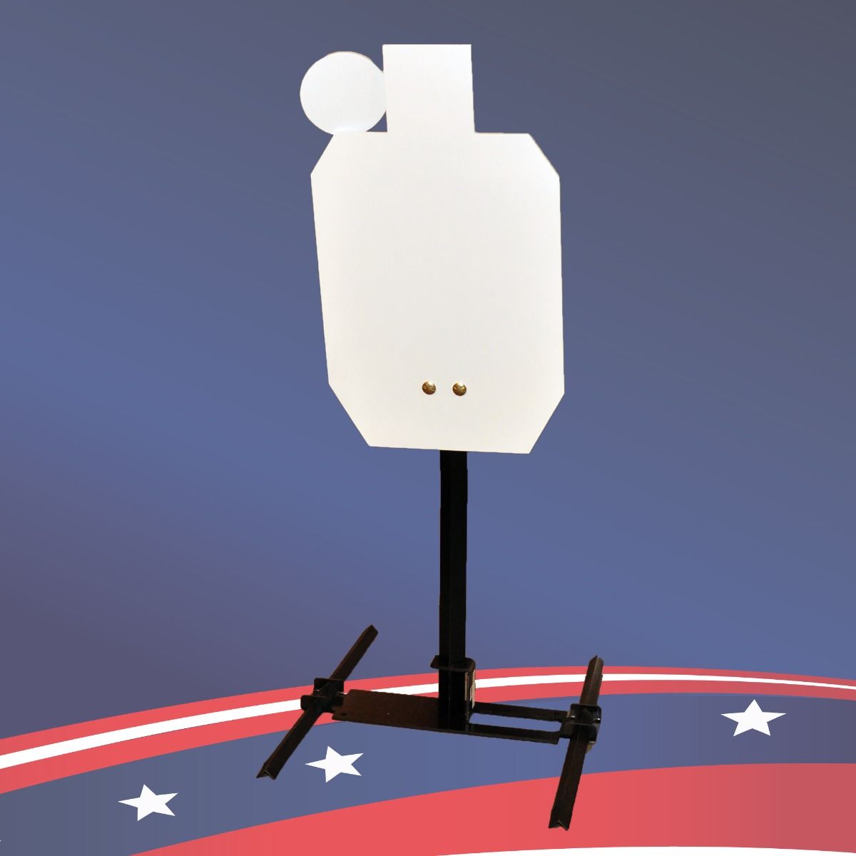 The hostage target full torso has the head of a "bad guy" looking over the shoulder of the "hostage". When hit, the "bad guy" flips from one side to the other side. You can use this target for practice on the hostage stages of a competition where the torso is a no-shoot target, or you can practice your regular body and head shots on the torso section only. The target comes complete with stand and all hardware required. The post fits into a socket on the base, and the torso is bolted to the post with Grade 8 hardened carriage bolts. The target is a Full Size IDPA torso (20 w x 30 h), the hostage head is 6" diameter. The targets are made from 3/8" AR500 steel for extreme long life and excellent impact resistance. Overall size: 24 w x 34 dp x 52 h