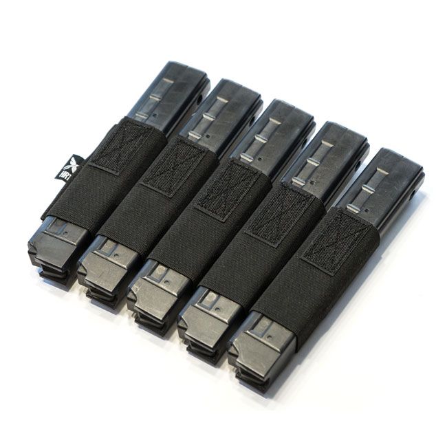 The SMG (Sub Machine Gun) insert allows you to carry up to 5 magazines in your Maximus Placard. This insert allows most size magazines to be inserted from a smaller MP5 (9mm) style magazine up to larger HK UMP (45ACP) style magazine. The inserts are elastic and if your magazine is similar in size to the ones pictured, it will probably work.