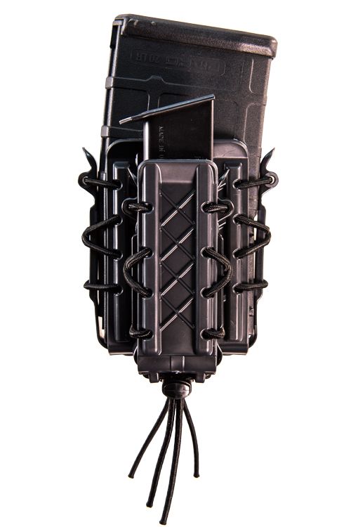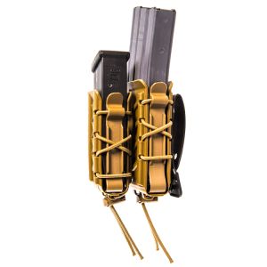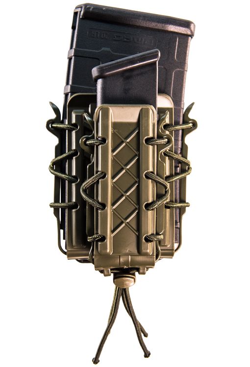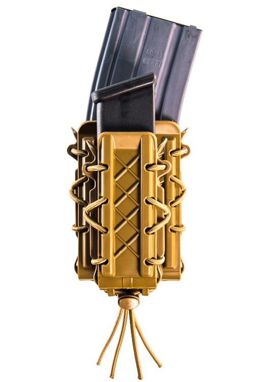 Functioning much the same as their nylon counterparts. The body and brackets are made with durable and flexible, proprietary polymer and are laced together with bungee cord for the same versatility our customers have come to expect from the TACO® brand. As with the originals, these pouches grip and retain a wide variety of magazine styles and calibers.