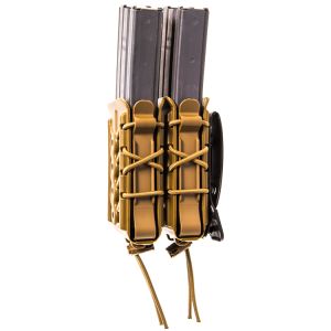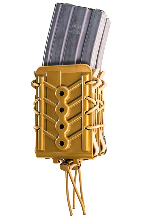 Functioning much the same as their nylon counterparts. The body and brackets are made with HSGI's durable and flexible, proprietary polymer and are laced together with bungee cord for the same versatility our customers have come to expect from the TACO® brand. As with the originals, these pouches grip and retain a wide variety of magazine styles and calibers.
