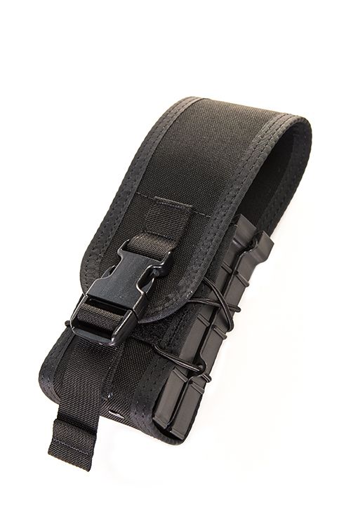 Holds and covers 2 rifle magazines.