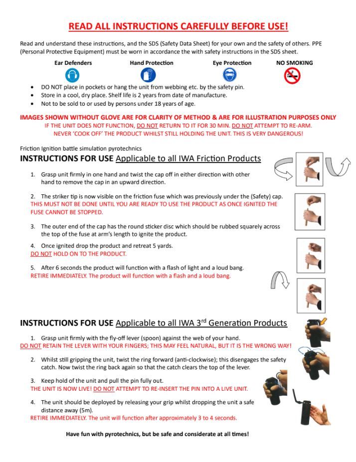 - These items are for Law Enforcement, Military & Security training, Maritime/Signaling, Film Industry, Airsoft and Paint Ball War Activities engaged in properly trained professionals.