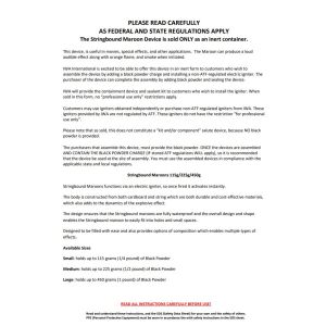 IWA International is excited to be able to offer this device in an inert form to customers who wish to assemble the device by adding a black powder charge and installing a non-ATF-regulated electric igniter. The purchaser of the device can complete the assembly by adding black powder and sealing the device.
