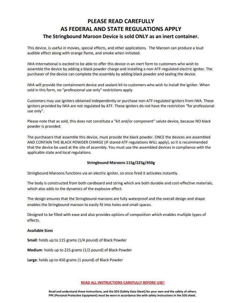 I.W.A. International Stringbound Maroon Device | Signal & Simulation Pyrotechnic
