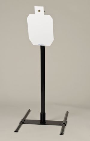 The IDPA 2/3 with stand size target is mounted to the Static Stand assembly. The target base is 23" wide and includes two 34" long adjustable legs for side stability. These legs can be adjusted as needed for ground conditions and remove easily for transport. The target is made from 3/8" thick AR500 hardened steel for extreme long life and excellent impact resistance. Overall dimensions: 57 tall x 23 wide x 34 dp