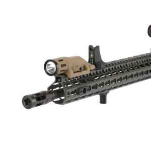 With 400 lumens of vibrant white light, the FDE WML Series is ultra-compact, durable, and offers three operating modes: constant, momentary and strobe. Extensively tested for performance, durability and reliability, its high efficiency emitters provide up to 1.5 hours of runtime in white mode, or 4 hours in infrared mode. This 3-ounce weapon light’s concentrated, high-intensity beam fills your field of view for close to mid-range target identification. With just a flip of the lever, instantaneously switch between white or infrared mode. In addition, the easy-to-operate lockout system ensures the light isn’t activated until you’re ready. Our all-inclusive rail clamping design integrates seamlessly with your weapon, providing simple, fast mounting with no need for additional tools.