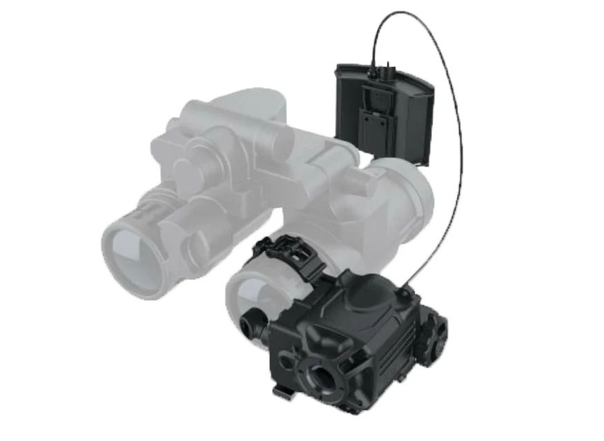 A common complaint of clip-on thermal imagers is the additional weight it adds to host systems and the limited battery life. The Jerry CE5 solves both of these problems by eliminating the onboard battery compartment, moving the power source to a larger external battery pack (included), reducing frontal helmet weight and offering over 8 hours of continuous battery life.