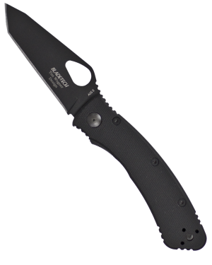 - Blade steel AUS8 (Tanto style, flat ground with black Titanium Nitride coating)