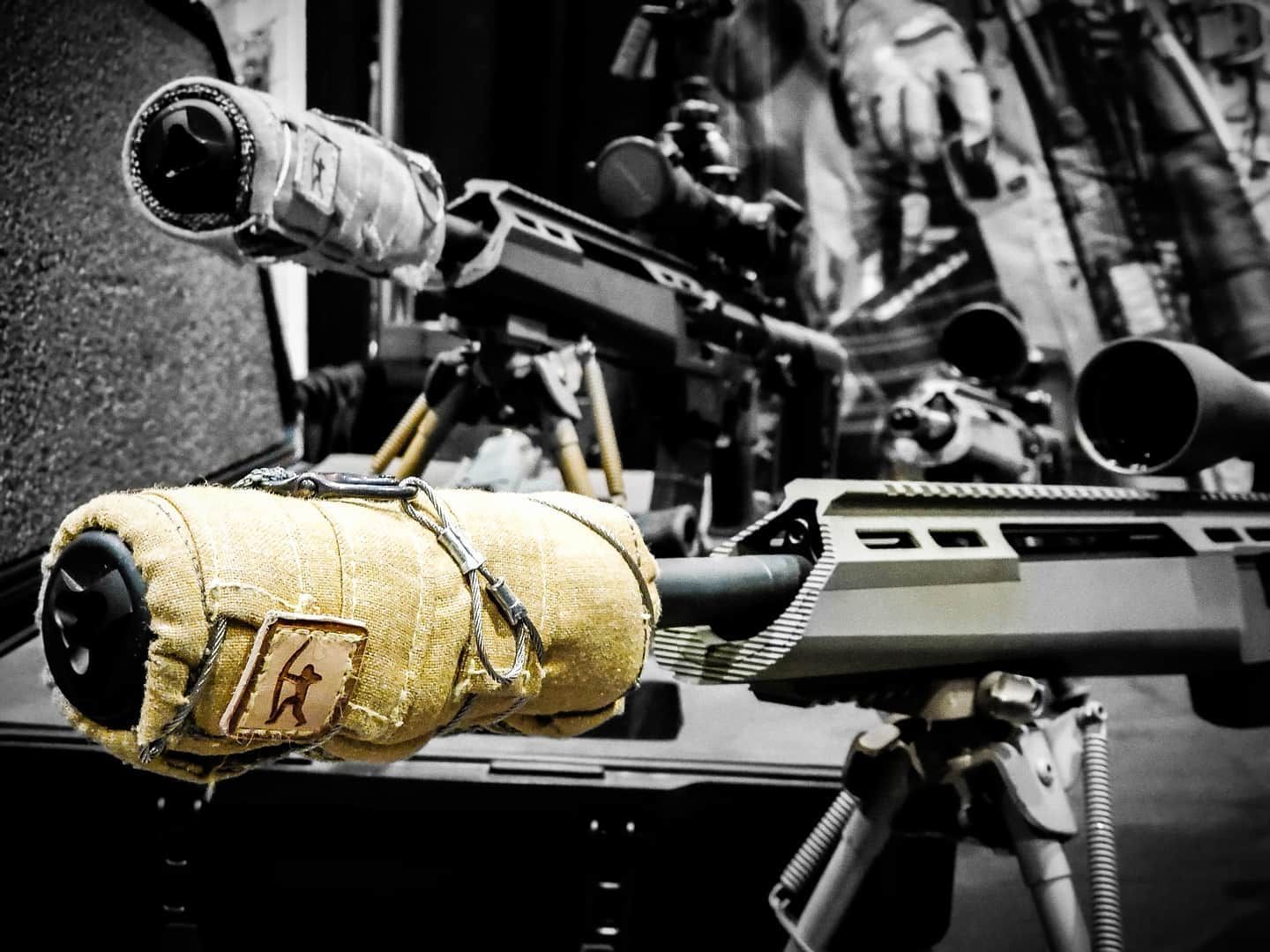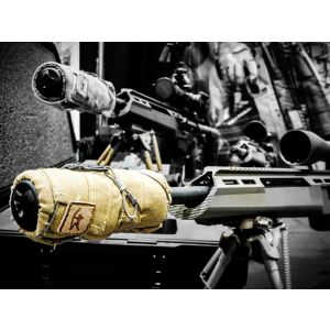 Our suppressor covers provide the greatest protective thermal barrier for weapons with high rates of fire typical with both semi-auto and full auto, including belt fed weapon systems. Suppressor mirage seen through magnified optics is eliminated when using a straightJacket (Patent Pending). The straightJacket is the superior solution for suppressed weapons. Our suppressor cover will never melt or catch on fire as every material included in it is flame resistant down to the stainless-steel thread that holds it together.