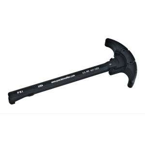 The Gas Buster® charging handle with oversize latchs is a safety device with ergonomic design that diverts harmful gases, oil and dirt particles away from the shooter. This is a PRi Patented product. Safety approved & used by the US Marine corps. Comes with a black finish. The charging handle is constructed of T6 7075 hard coat Black anodized aluminum.