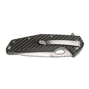 A knife predestined as an urban EDC or for anytime out and about in the wastelands. The 440A steel blade is opened by flipper or thumb and is securely engaged by a liner lock. The blade also provides the option to choke up on the grip for very precise cuts. The textured G10 scales not only do their part for the attractive appearance by also give the knife extremely secure handing. It is equipped with a clip and a lanyard hole.