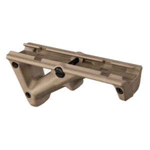 The AFG-2 is a slim line design that is shorter in length and width compared to the original AFG. The smaller size allows for mounting on a wider variety of railed hand guards and better compatibility with rail covers and accessory mounts. Compatible with most any M1913 Picatinny-railed hand guard, the Magpul AFG-2 (Angled Fore Grip) takes into account natural body mechanics and provides a comfortable, more stable, user interface that reduces fatigue, and allows for more precise weapon control. By positioning the shooter's hand high on the centerline of the bore, unlike conventional vertical fore grips, the AFG-2 helps mitigate recoil and control the weapon to facilitate faster, more accurate follow-up shots.