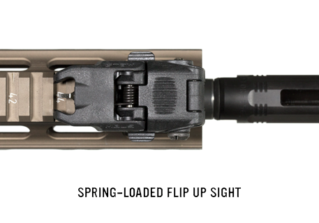 - Spring-loaded flip up sight easily activated from either side or by pressing the top