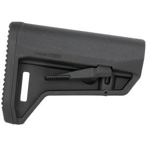The MOE SL-M Carbine Stock - Mil-Spec is a drop-in replacement buttstock for AR15/M4 Mil-Spec carbine buffer tubes. It was specifically developed for ultra-compact, PDW-style military platform requirements and for users desiring a smaller, lighter stock. Similar to the SL-K, the SL-M features a shorter and slimmer profile that is optimized for PDW-length receiver extensions. With its small, non-slip rubber butt-pad and an angled toe, the SL-M was engineered to support shoulder transitions, even while wearing body armor and modular gear. It includes a unique, ambidextrous release latch that is shielded to prevent accidental deployment and minimizes rattle on the receiver extension without requiring additional locks, levers, or springs. The 1.25" footman's loop accepts an optional M-LOK QD Sling Mount for push-button style QD sling swivels.