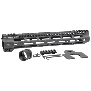 The Combat Lightweight M-Lok Handguard features a lightweight design with a slim profile. It is constructed of 6061 aluminum with a continuous 1913 Picatinny top rail, two integral anti-rotation QD sling sockets and seven sides of M-Lok. This free-float handguard also utilizes a 4140 heat treated barrel nut, 4140 heat treated torque plate, and is fully dehorned and deburred. It includes a barrel nut, wrench and 5-Slot polymer M-Lok rail. Made in USA.