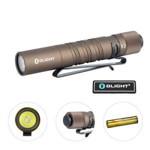 The I3T EOS Desert Tan is a slim tail switch flashlight powered by a single AAA battery with a max output of 180 lumens.