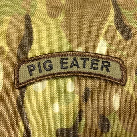 Show your “Pig Eating” Pride with this exclusive Tab style patch in OD/Black with Velcro backing.