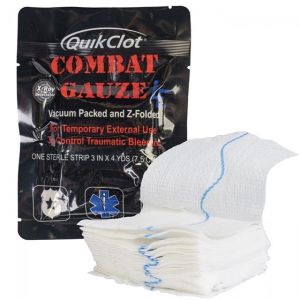 QuikClot® Combat Gauze® LE is a soft, white, sterile, nonwoven 3" by 4 yds z-folded gauze impregnated with kaolin, an inert mineral that does not contain animal or human proteins or botanicals. QuikClot® Combat Gauze® LE is individually wrapped in an easy rip, military grade foil pouch. Indicated for temporary external control of traumatic bleeding, QuikClot® Combat Gauze® is flexible, pliable, and contours to all wounds. Recommended as the number one hemostatic agent by the CoTCCC (Committee on Tactical Combat Casualty Care), QuikClot® Combat Gauze® is the only product carried by all branches of the US Military to control life-threatening hemorrhage.