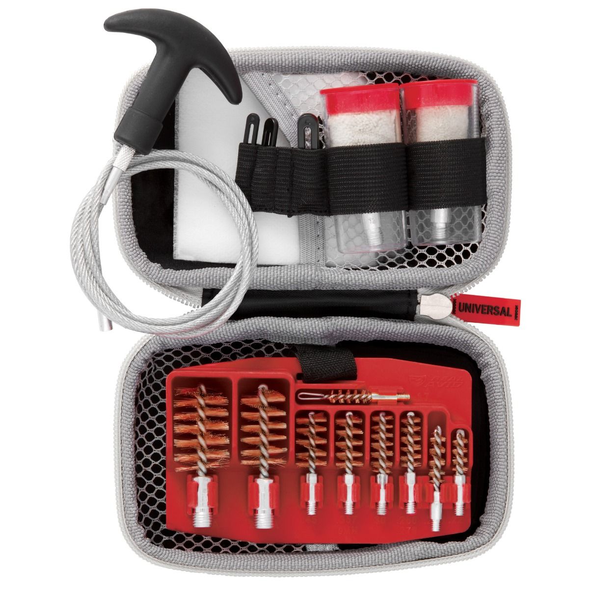 The Gun Boss pull-through system cleans and protects firearms by pulling fouling out of the muzzle, rather than back into the chamber and action. It comes in a compact, weather-resistant, molded case. Non-marring aluminum connectors and adapters, phosphor bronze brushes, and coated steel cables protect your bores. Every tool snaps securely into place on the high-quality, oil-resistant tray. Fits .17 - .45 cal., 20 ga. & 12 ga.