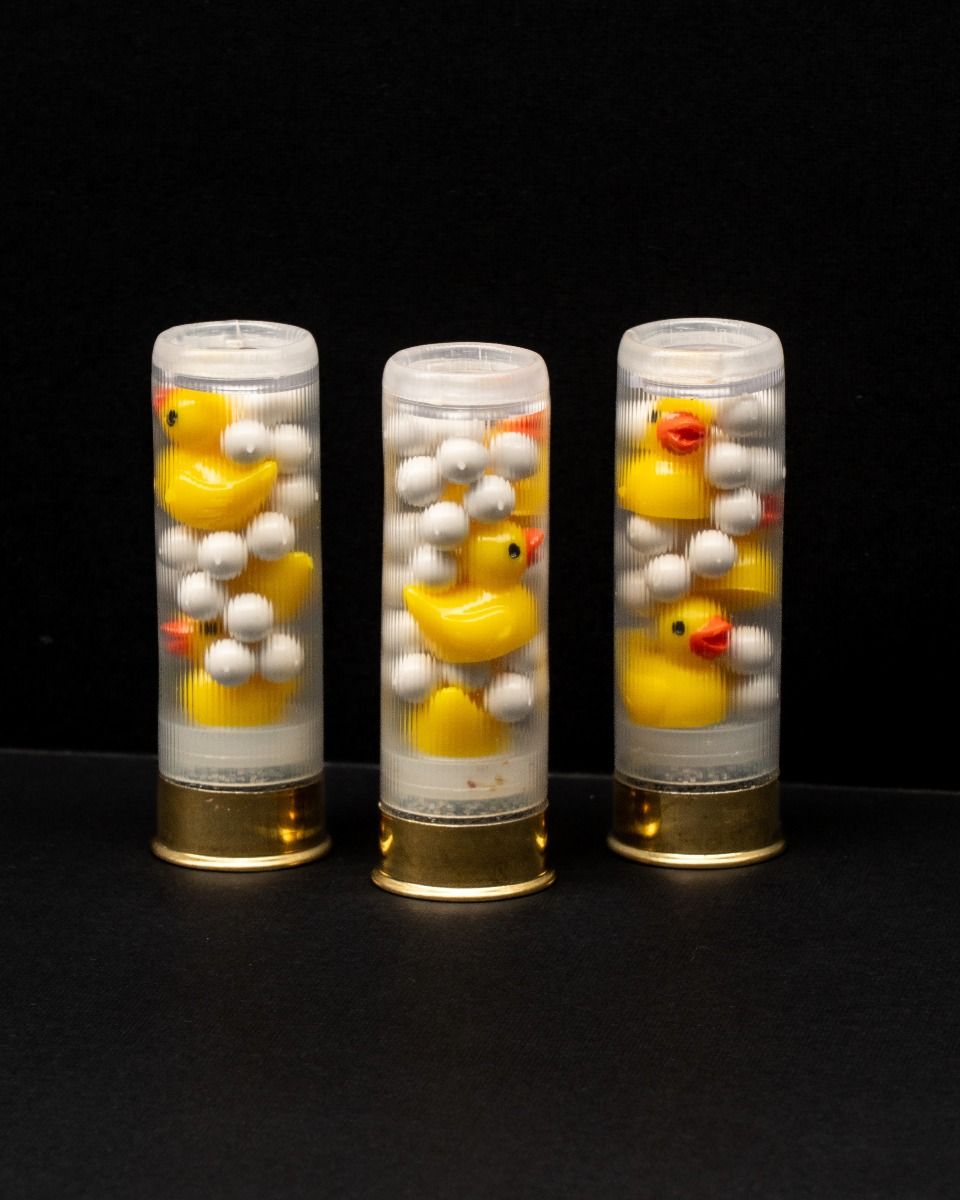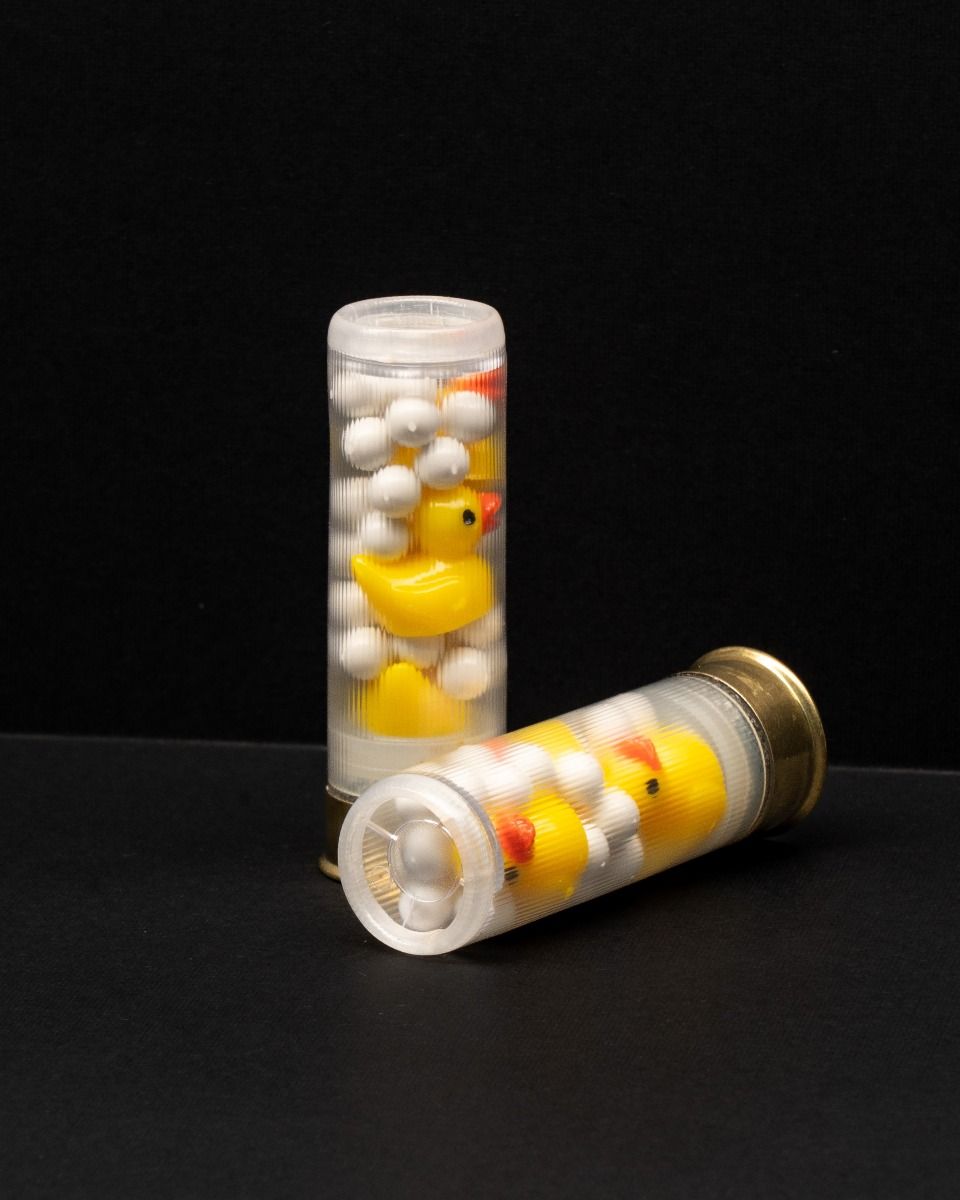 Defend your home in a humorus way, and add insult to injury! These rounds contain three frangible, resin ducks surrounded by plastic .20g precision Air