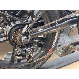 Powered by a 48 volt Samsung lithium ion battery hidden in the frame.