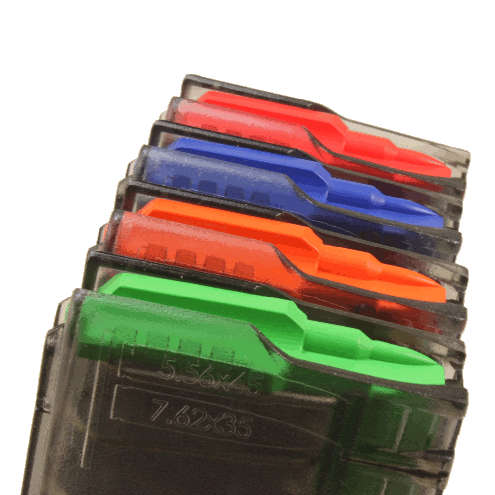 The ETS Rapid Recognition System allows you to quickly and easily differentiate your mags. Many people mark their mags to identify what kind of load, or even what caliber, such as .300 blk, so you don't accidentally run the wrong ammo in your AR. And since our mags are Translucent you can see your color from any angle with a quick glance!