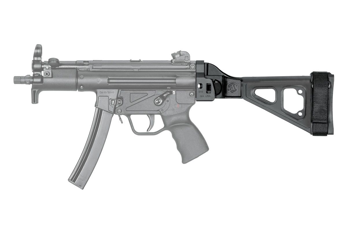 The SBT5KA Pistol Stabilizing Brace® was developed in conjunction with B&T USA and designed after the iconic B&T stock for HK platforms. Featuring an integral, side-folding mechanism, the SBT5K fits HK MP5K/SP89 Clones and will also fit the SP5K. It WILL NOT fit, HK MP5, MP5K Reverse Stretch, or HK53 Clones.
