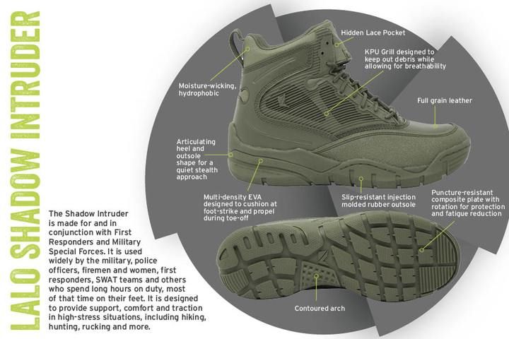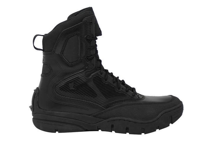 The Shadow Intruder is made for and in conjunction with the Special Forces. Features a patented bi-fit board and rubber outsole for an efficient “stealth approach” when transferring energy from foot strike to toe- off, compression molded dual EVA midsole, compression molded EVA insole, slip resistant, light-weight rubber outsole by DuPont™, articulating heel and outsole shape for assisting in noise reduction, blade resistant “SuperFabric® toe cap, 8” Microfiber H2O shedding genuine leather upper with breathable membrane, moisture-wicking, H2O shedding antimicrobial upper lining, rip-stop nylon accents, engineered Achilles flex notch, gusseted tongue construction with invisible lace pocket, seamless, lightweight quarter protection construction. This boot does not have a zipper.