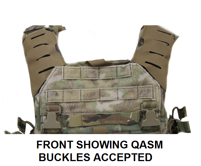 - Integrated nylon vertical strips to accomadate QASM buckles. To add a chest rig if needed.QASM Buckles not included