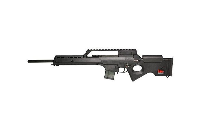 Back by popular demand, the SL8 is an import-legal version of the G36 designed for precision shooting. It features a cold-hammer forged barrel with a recessed crown. The free-floating bull barrel is manufactured with the famous HK cannon grade steel. The G36/SL8 short-stroke gas piston, later featured in the HK416, ensures smooth, clean, reliable operation. The SL8 also features a short MIL-SPEC optics mount, match trigger, and an adjustable stock.