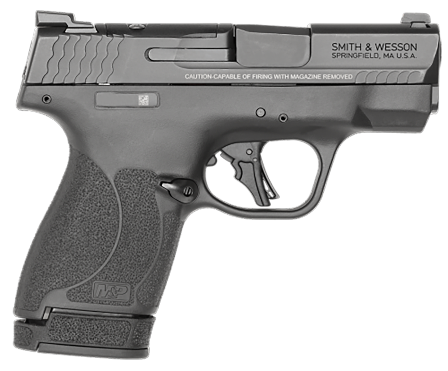 The M&P Shield Plus is extremely thin and lightweight and can be comfortably carried all day. It features the M&P's patented take-down lever and sear deactivation systems all for disassembly without pulling the trigger; flat face trigger for consistent trigger finger placement which allows for more accurate and repeatable shooting; enhanced grip texture allows the user to manage recoil, keep a firm grip and delivers comfort when concealing; optimal 18-degree grip angle for natural point of aim and Armornite durable corrosion resistant finish. Includes two magazines.
