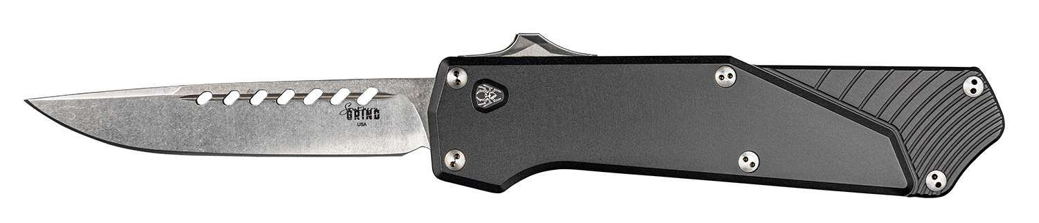 Southern Grind Arachnid 3.2" OTF Drop Point Satin Folding Blade - Black 7075 Handle