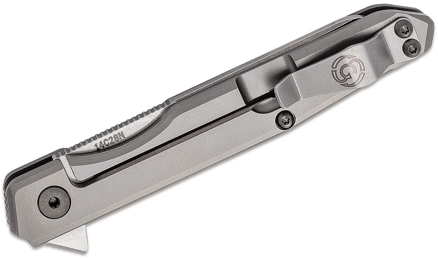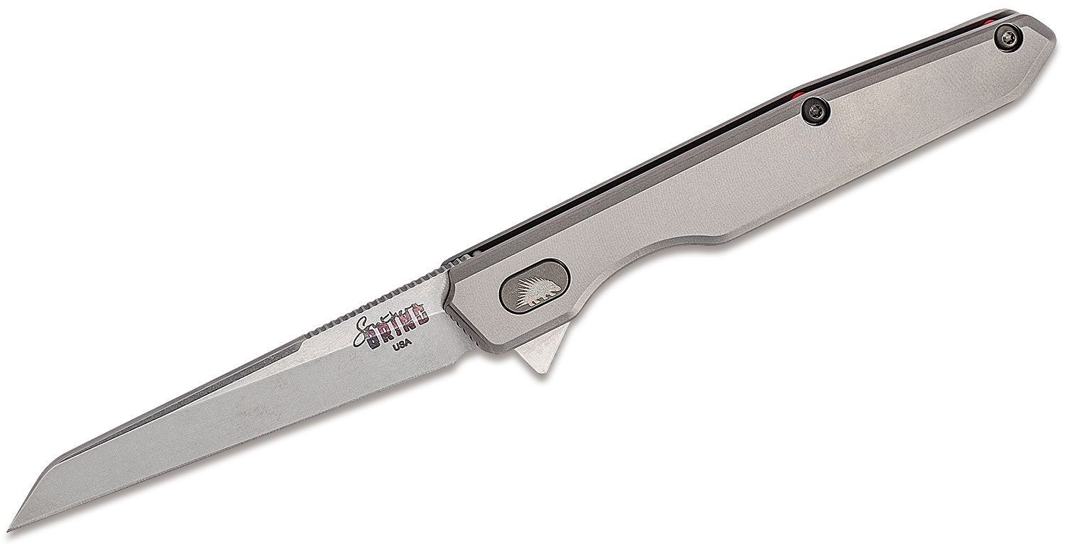 The Quill is another great addition to any EDC rotation. This gentleman's folder may be on the smaller side but it is built tough like most Southern Grind knives. The 3" Wharncliffe blade is made from 14C28N stainless steel and rides on bearings for a smooth and satisfying action. The titanium handles have a slim design that allows the knife to virtually disappear in your pocket and is accented with red barrel spacers. The pocket clip might be small but it is sturdy and provides strong retention while being easy to get in and out of the pocket.