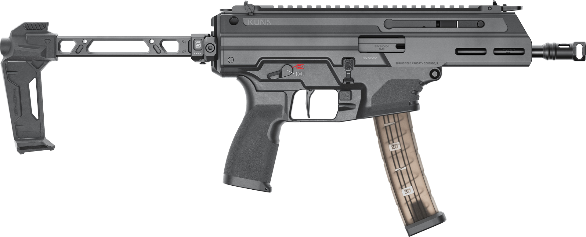 Springfield Armory KN9069BFSA Kuna 9mm Luger 30+1 6.12" Black Melonite Steel Barrel, M-LOK Handguard, Black Hardcoat Anodize Aluminum/Polymer Picatinny Rail Receiver, Black Strike Industries Brace, AR Style Grip