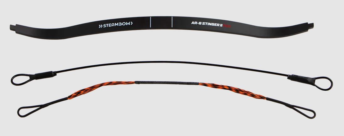 Pack contains: 1 fiberglass/carbon fiber AR-6 Stinger II PRO limb, 1 AR-6 Stinger II string, 2 limb end caps, 1 stringing aid
