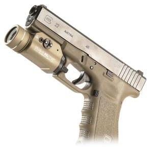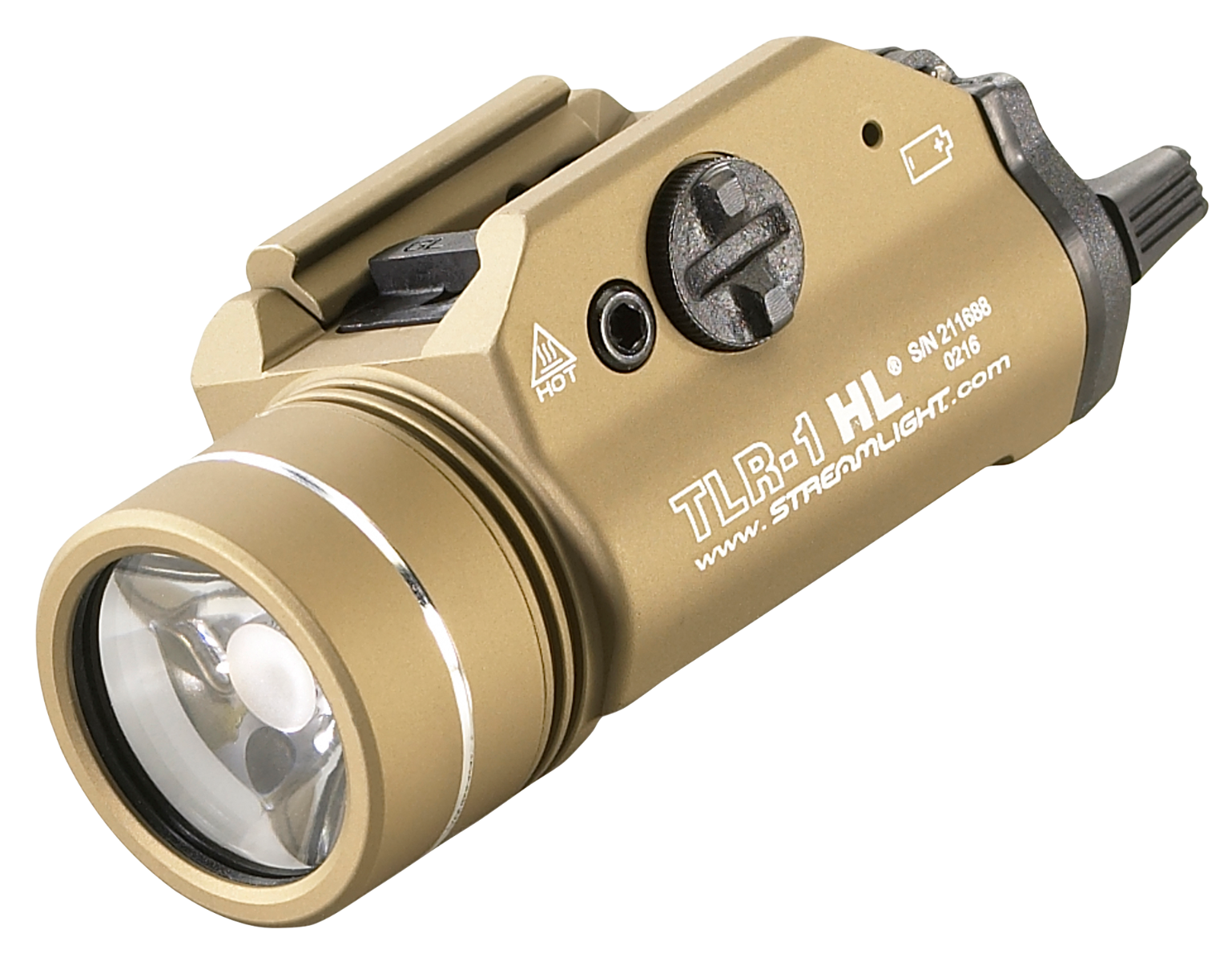 The TLR-1 HL provides an 1000 lumen blast of light for maximum illumination while clearing a room or searching an alley. This rail-mounted, tactical C4 LED light with a strobe setting has an ambidextrous switch for momentary or steady LED operation and a double tap activates the strobe (which can be disabled). It mounts directly to Picatinny and Glock-style rails and includes rail locating keys for Glock-style, Picatinny, Beretta 90two, S&W 99, and S&W TSW. The TLR-1 is made with impact-resistant, sealed construction and is IPX4 water-resistant. The light housing is 6000 Series machined aircraft aluminum, with a chemically-resistant engineering polymer laser housing and a Borofloat glass lens. Assembled in the USA.