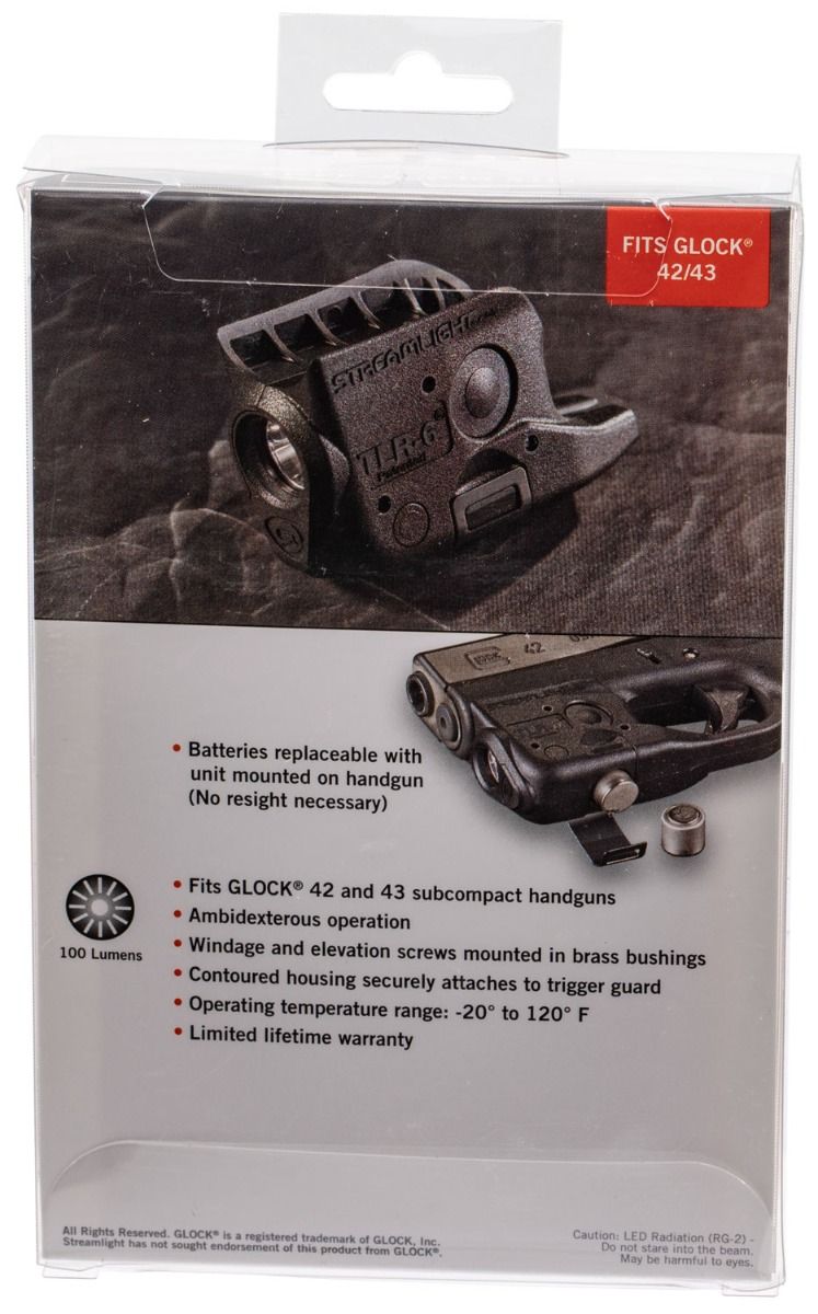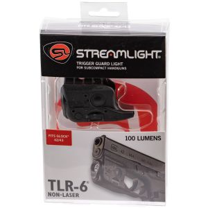 The TLR-6 Non-Laser is based on Streamlight's popular ultra-compact TLR-6 weapon light. This non-laser weapon-mounted light features tool-less battery replacement without removal from the weapon. The light provides 1 hour of regulated runtime. It is designed to securely attach to the trigger guard on hand guns and is made of water-resistant durable, impact-resistant polymer.