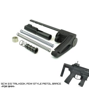 The SCW 2.5 Tailhook is by far the most compact PDW Style Pistol Brace that the industry has ever seen, with a collapsed length of 2.5”. While compact, it is still very versatile, allowing for button free brace deployment and 5 length of pull settings. At full extension, length reaches 12.5”, keeping it comfortable and legal within ATF Pistol Brace requirements. The SCW Tailhook 2.5 utilizes the patented Dead Foot Arms LLC Modified Cycle System and a shortened version of the 9MM Bolt Carrier Group which is sold with the kit. The SCW 2.5 Tailhook features an ergonomic design that uses a single rail down the left side of the weapon which does not interfere with weapon controls or function. System includes complete Tailhook pistol brace, receiver extension, adjustment rail, recoil springs, and MCS Style (shortened) 9MM bolt carrier group. System weight, excluding BCG is 12.8oz.