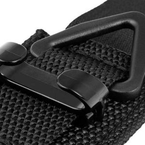 The high-strength hook and buckle interface was designed for security, strength, and ease of application. The clip design allows for rapid routing of the tourniquet strap (if a limb is trapped for example) while eliminating need for re-threading the webbing through a buckle. By eliminating the requirement to re-route the webbing the tourniquet is easier to use when operating under stress. This reduces application time, which can result in reduced levels of blood loss and better quality patient care.