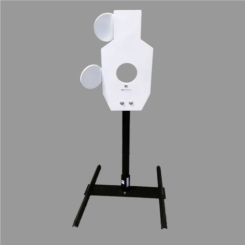 The target comes complete with stand and all hardware required. The post fits into a socket on the base, and the torso is bolted to the post with Grade 8 hardened carriage bolts. The target is a B C Zone torso (12 w x 24 h), the hostage head and center mass is 6" diameter. The targets are made from 3/8" AR500 steel for extreme long life and excellent impact resistance.