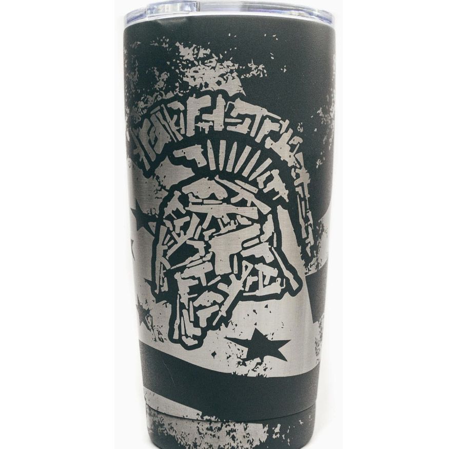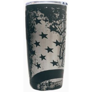 This insulated tumbler has the Tactical Shit Gun Spartan logo etched into the side with a battle worn finish and the American Flag in the background. It keeps your drink hot for over 6 hours, or cold for over 10. Fits perfectly in your cup holder!