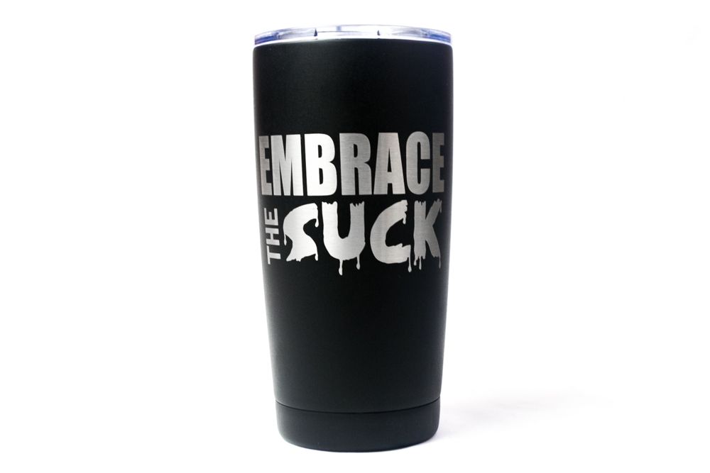 Embrace The Suck, and keeps your drink hot for over 6 hours, or cold for over 10. Fits perfectly in your cup holder