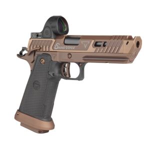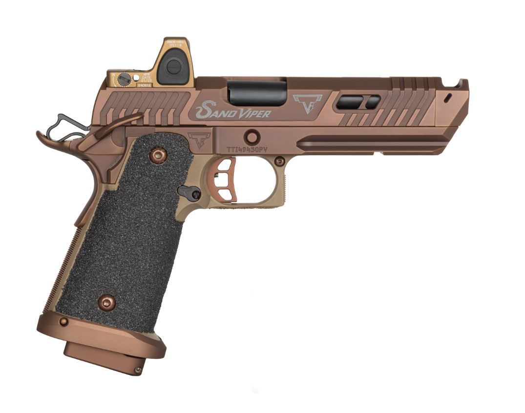 The Sand Viper was designed to be the ultimate 2gun/3gun pistol. This firearm runs flawlessly with any factory or handloaded ammunition. With its extremely flat shooting compensator and low bore axis optic cut, point of aim will be nearly dead on at every distance from 5 yards to 50! This gun is already the sickest serpent on the planet holding the overall win at the USPSA 2gun nationals. Unlike many other 2011s, the fit and finish is like nothing you've ever held. These guns are tailor designed to fit and feel exactly like the guns Taran has used building his legacy. The memory groove is blended seamlessly to activate immediately. For any shooter this is the most astonishing handgun you’ll ever hold. Be careful of its hidden fangs!